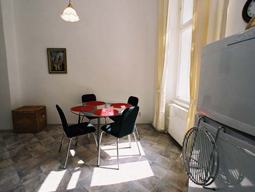When you walk through the street door into the Prokopska apartment building, you must pass through this hallway and gas lamp before ascending the stairs to the apartment. The vaulted ceilings are beautiful.