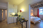 Vlasska 9 is our 2nd apartment in another wonderful 17th century house in the Mala Strana (Lesser Side) district - the oldest and most beautiful part of the old city center of Prague, situated just between the Prague Castle and the Charles Bridge. The layout of the Vlasska 9 apartment is exactly the same as the apartment above it (see preceding Vlasska 7 on our site). The only difference is that this one has a large double bed and original painted wooden ceilings from the 17th century, so typical for this part of Prague and this period of Prague architecture.